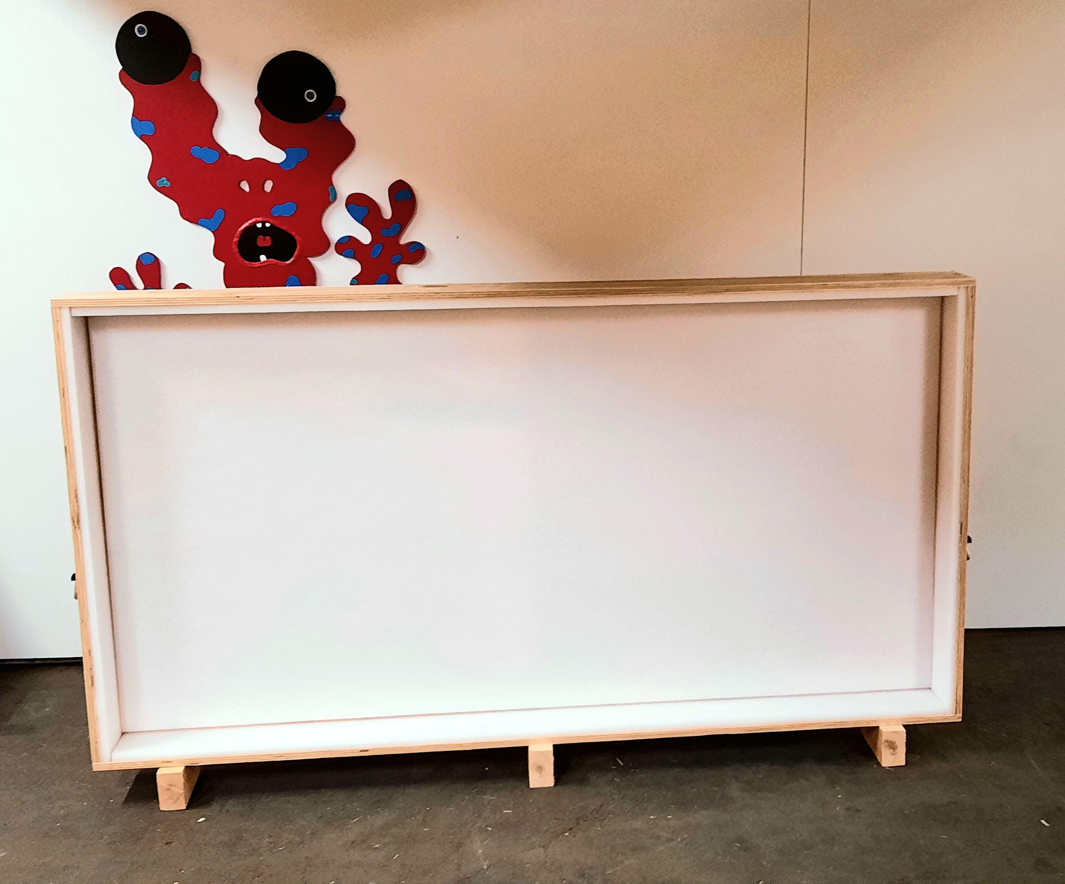 Wooden crate with metal handles, can be driven under, inside dimensions measured without foam, new and unused
